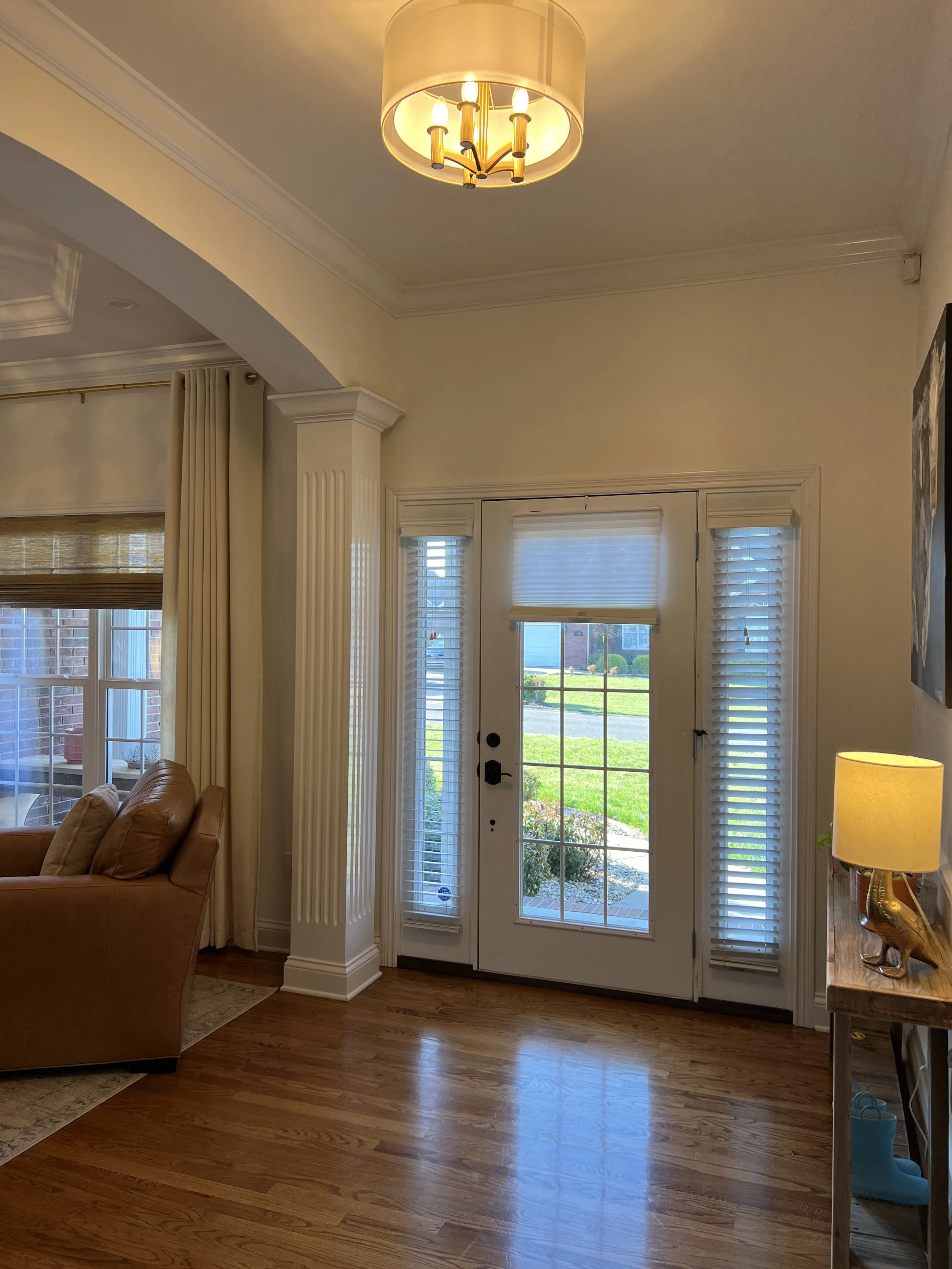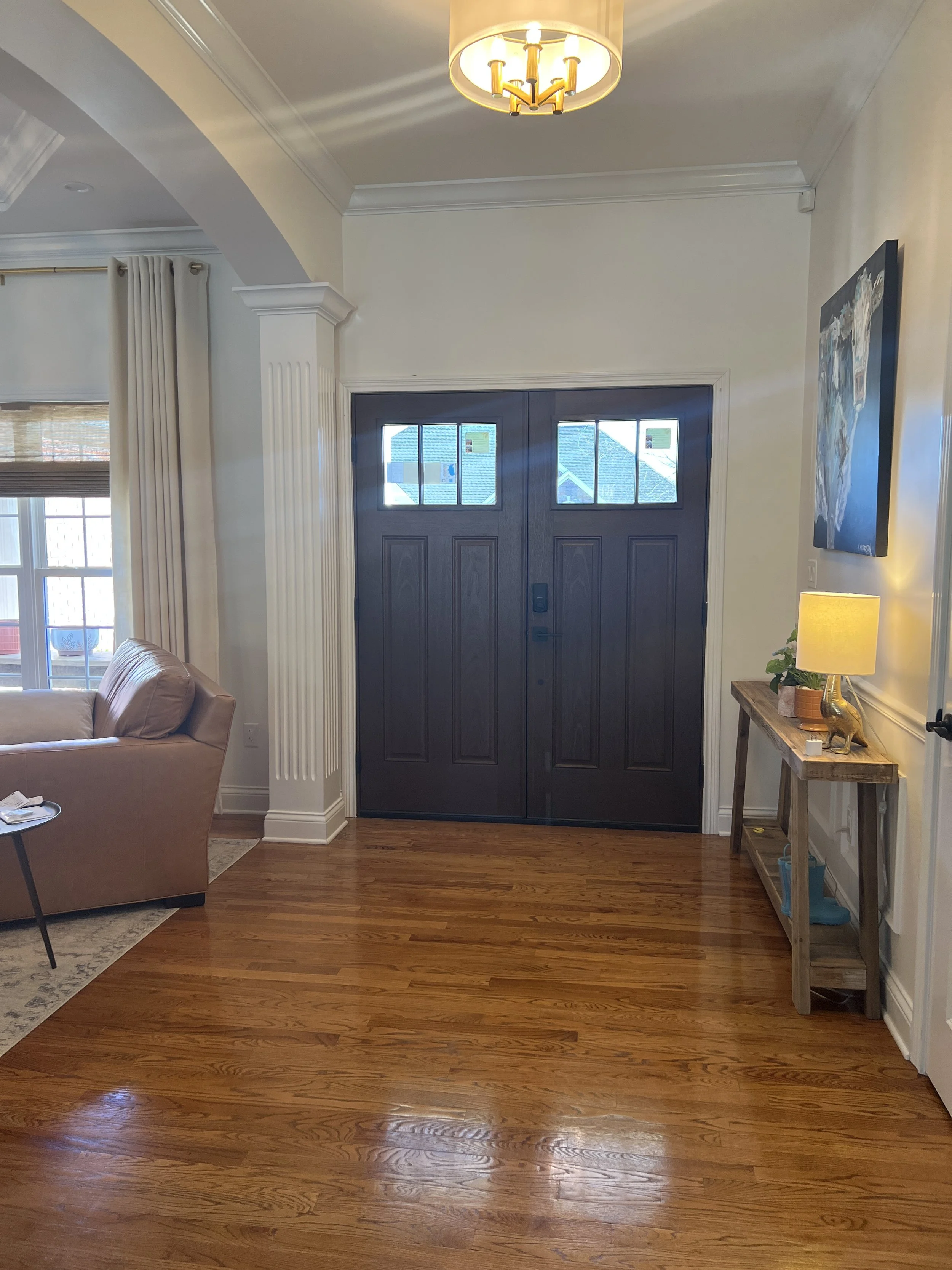 When someone approaches your home, the front door is naturally where their eyes are drawn. It serves as the centerpiece of your home and sets the tone for what lies behind that door. A dated, worn, or basic builder-grade door can make even the most well-maintained property feel uninviting or neglected. When we purchased our most recent home, I hated the front door. It was a lower end builder grade glass door with double glass sidelights. There was clearly no privacy, so the previous owners had 3 separate blinds on the doors and it was not aesthetically pleasing.